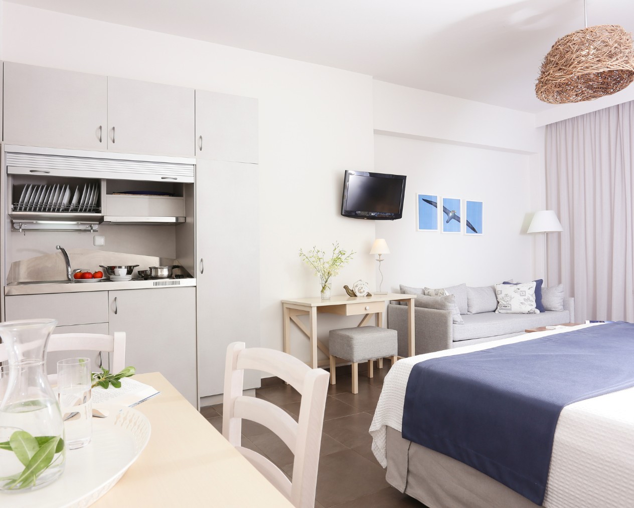 Pop Up Coliving Marathopoli offers a small selection of light-filled studios and suites designed for comfort, focus, and rest. Each room features a high-quality anatomic mattress, a private bathroom, and plenty of natural light — ideal for both deep work and proper downtime.